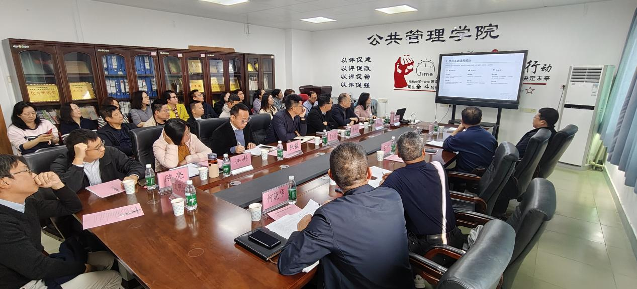 在专业汇报环节,行政管理系主任罗光华围绕专业建设基本情况和人才培养方案中的课程设置两大维度展开,介绍了专业师资队伍建设、科研成果产出、学生培养成效以及以“数字+金融”为特色的课程体系构建等发展现状,并结合行业数字化转型趋势与学校金融学科优势,提出了持续强化金融监管特色方向建设,深化“管理+金融+数字”跨学科课程整合,精准对接行业需求。公共事业管理系主任李自炜围绕专业建设的核心问题、发展现状及未来努力方向进行了阐述,分析了当前专业建设方面存在的不足和发展现状,明确要以智慧城市为核心特色方向,就特色方向打造、课程体系优化、师资能力提升等方面提出了下一步设想。